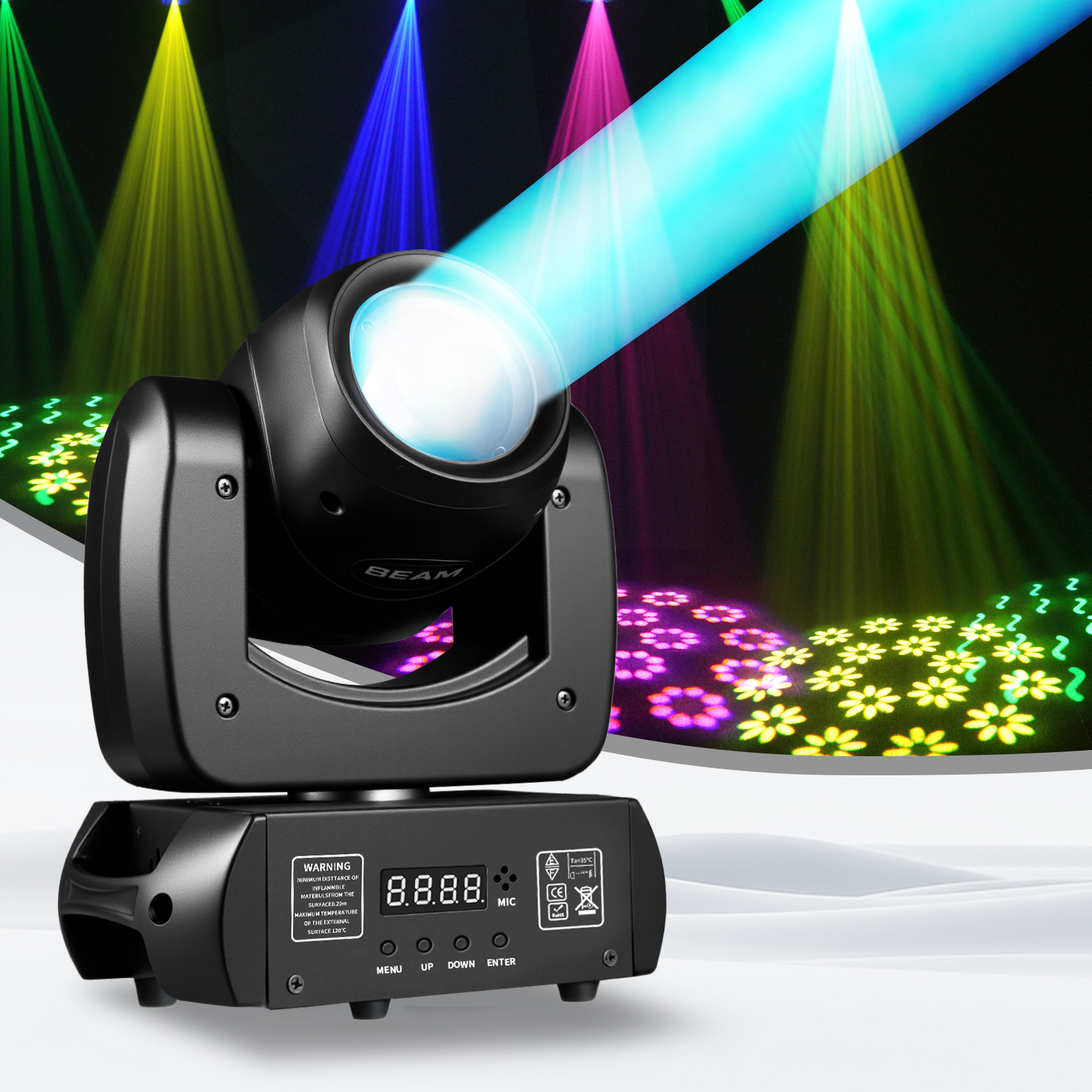 60W LED Beam Moving Head Light RGBW Color Mixing 8 Patterns DMX Effect Rotating Stage Light For DJ Show Party KTV