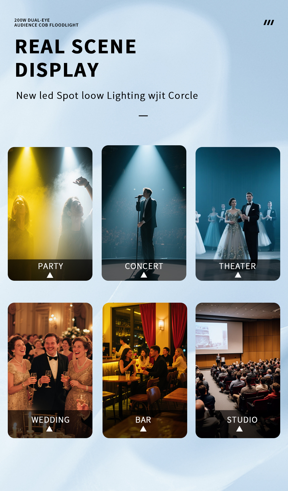 Strobe: Electronic strobe and adjustable speed strobe effect 1~30Hz