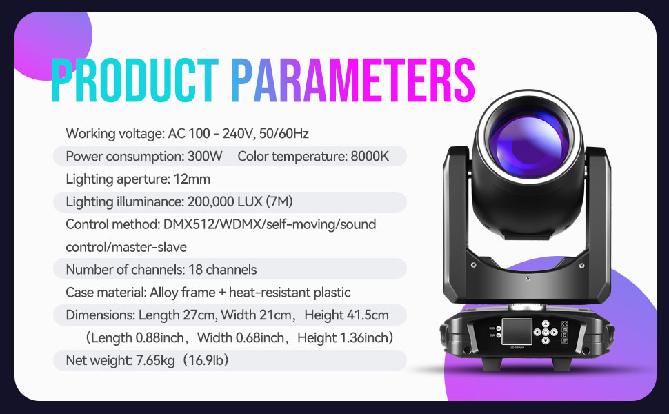 Control Method: DMX512/WDMX/Auto-running/Voice-activated/Master-Slave