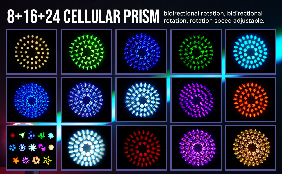 Prism: 8+16+24 honeycomb prisms, bidirectional rotation, adjustable rotation speed.